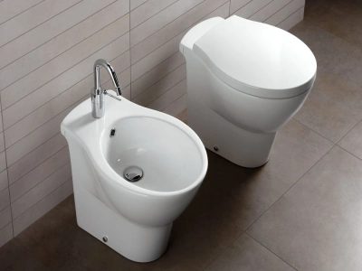 - Напольные биде. Это классический вариант, который подходит для любого туалета. Мы устанавливаем напольные биде с разными типами смесителей (однорычажные, двухрычажные или термостатические), которые могут быть встроены в биде или вынесены наружу.